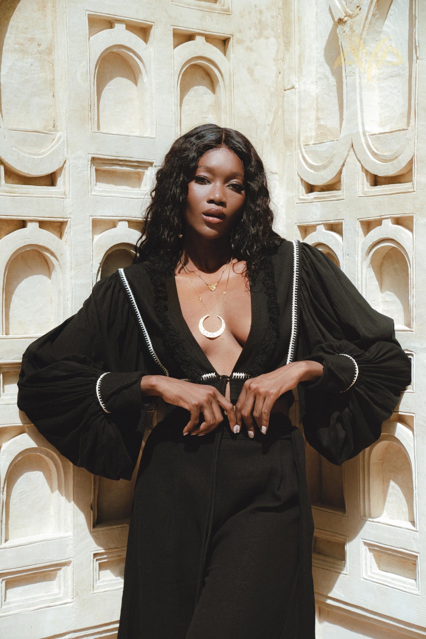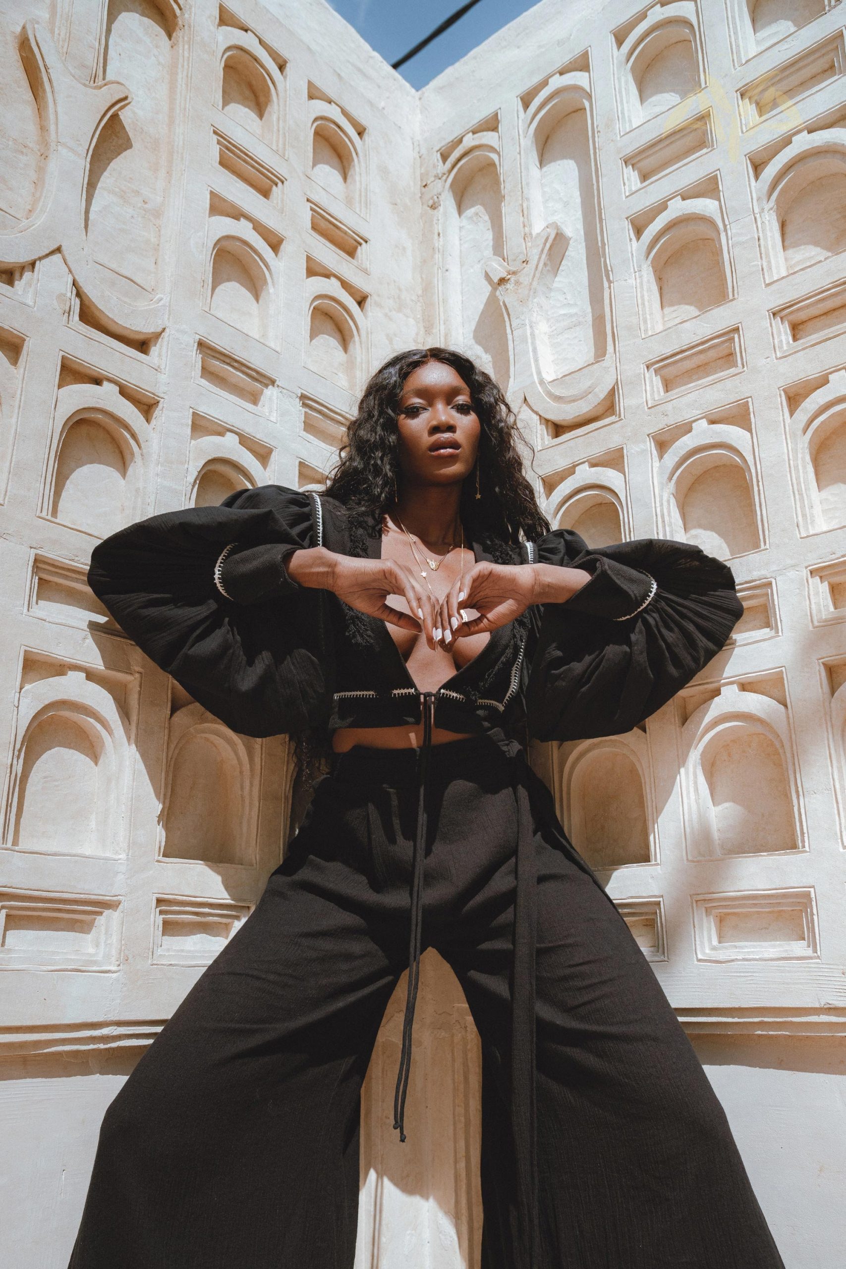 Black Linen Adjustable Pants Organic Wide Leg Open